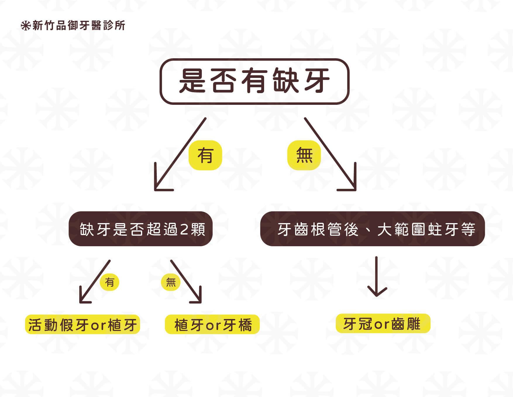 看了這麼多,所以假牙到底要如何選擇?可以參考下面流程圖簡單做了解。