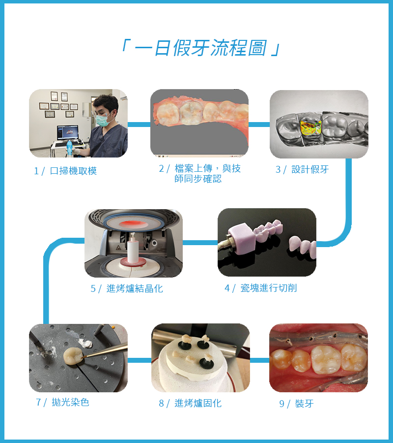 日新月異的科技時代,牙科醫療水平的提升,讓過去繁瑣的假牙製作流程可以加速到一日之內完成,強化玻璃陶瓷製作的牙套美觀又耐用,一日假牙實在是太棒了!