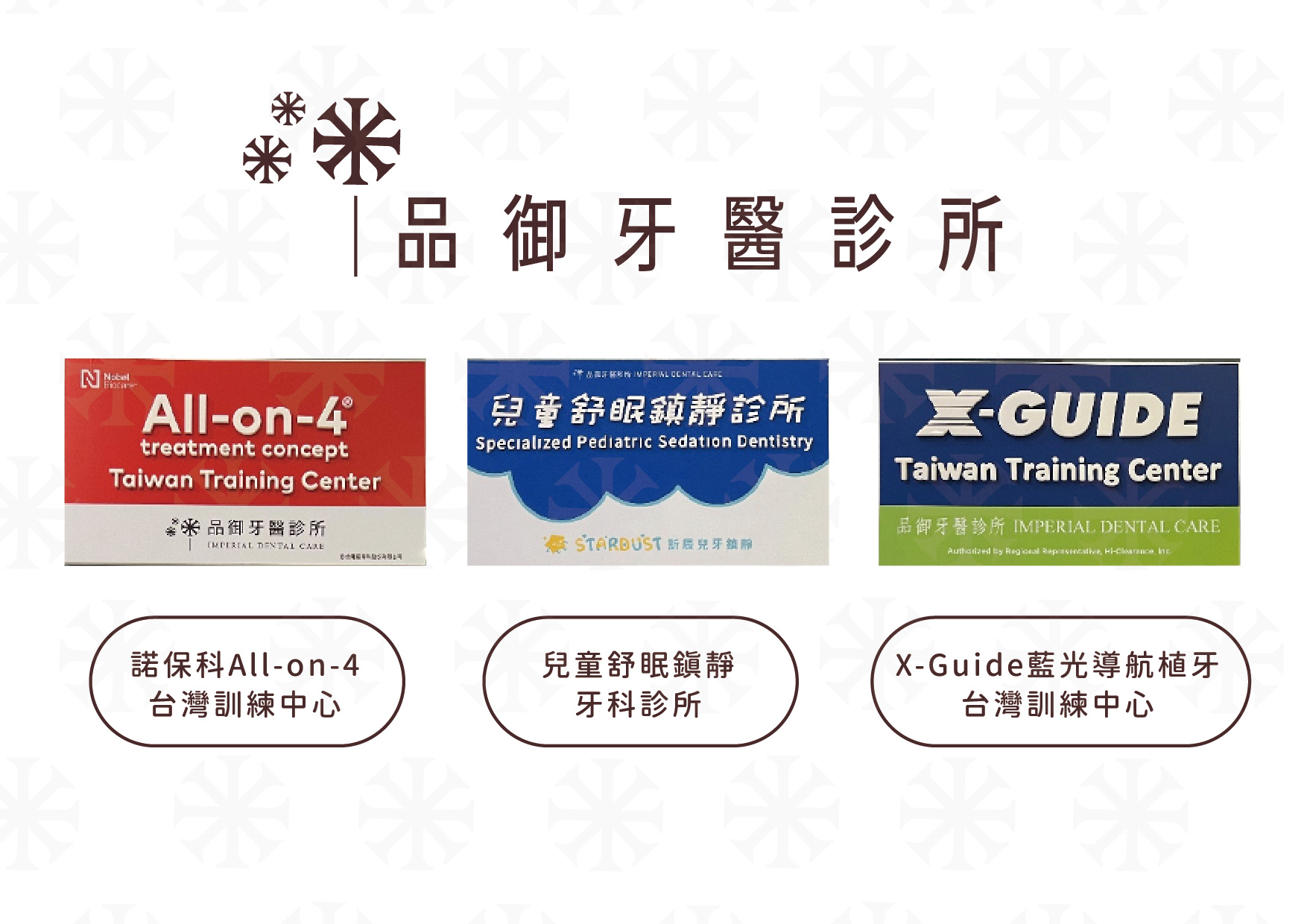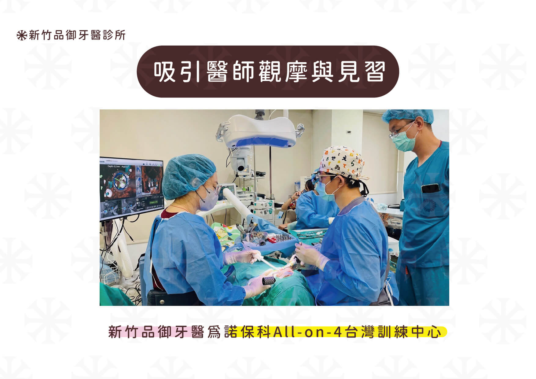 品御牙醫同時也是台灣首家與 Nobel Biocare 公司開辦 All-on-4 對外教學課程的診所,教學經驗長達 7 年之久。陸續開辦 21 梯次以上並教出 300 多位以上的 All-on-4 醫師,李俊瑩醫師、劉東翰與蔡濰仲醫師更是瑞典 Nobel Biocare 特聘講師。