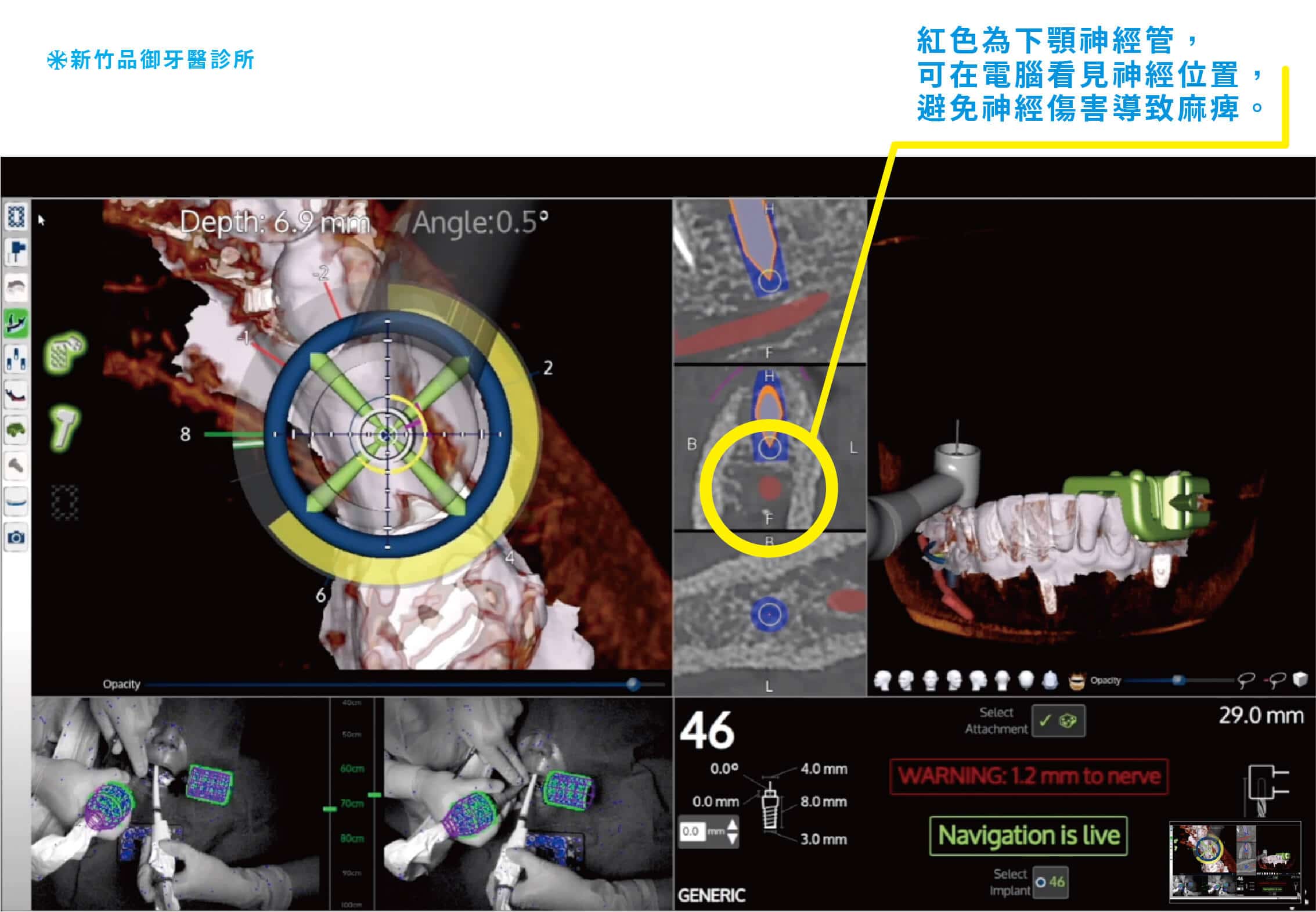 而新竹品御牙醫開發的新型手術技術「數位 All-on-4」,將保留傳統 All-on-4 手術原本優點減少補骨及手術次數,並新增數位科技「全口數位虛擬排牙」、「X-Guide 3D 藍光導航手術」執行,將電腦設計藍圖確實地複製在手術口內,術後等待假牙大幅縮短,並且舒適度提升了許多。