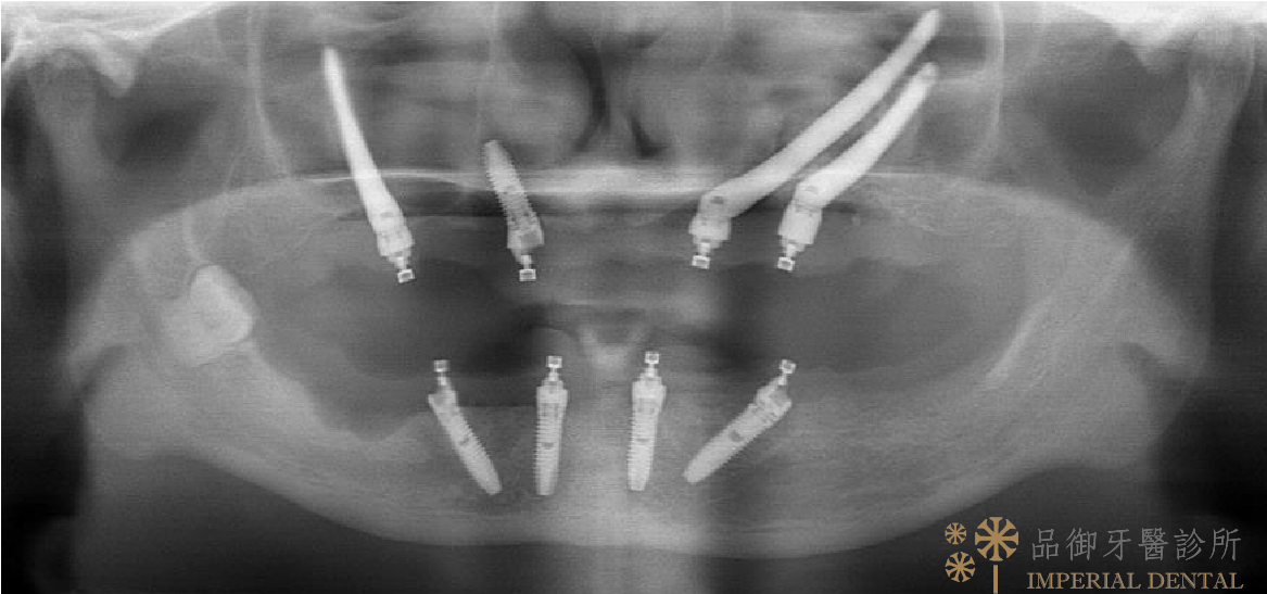 曾經去了好幾間牙醫診所就醫,評估後發現齒槽骨竟然萎縮無法支撐一般植牙,醫師評估說無法重建,頓時覺得很沮喪。全口無牙的狀況下只好勉為其難裝活動假牙將就著用。沒想到當配戴活動假牙後,只要咬硬的東西就會浮起來,大笑的時候會鬆動,與朋友談天時更擔心會突然掉出來。於是想要找個固定假牙方式重建。