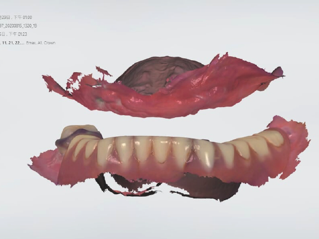 手術後三個月印模及口內掃描、照相資料收集作為正式假牙的參考。