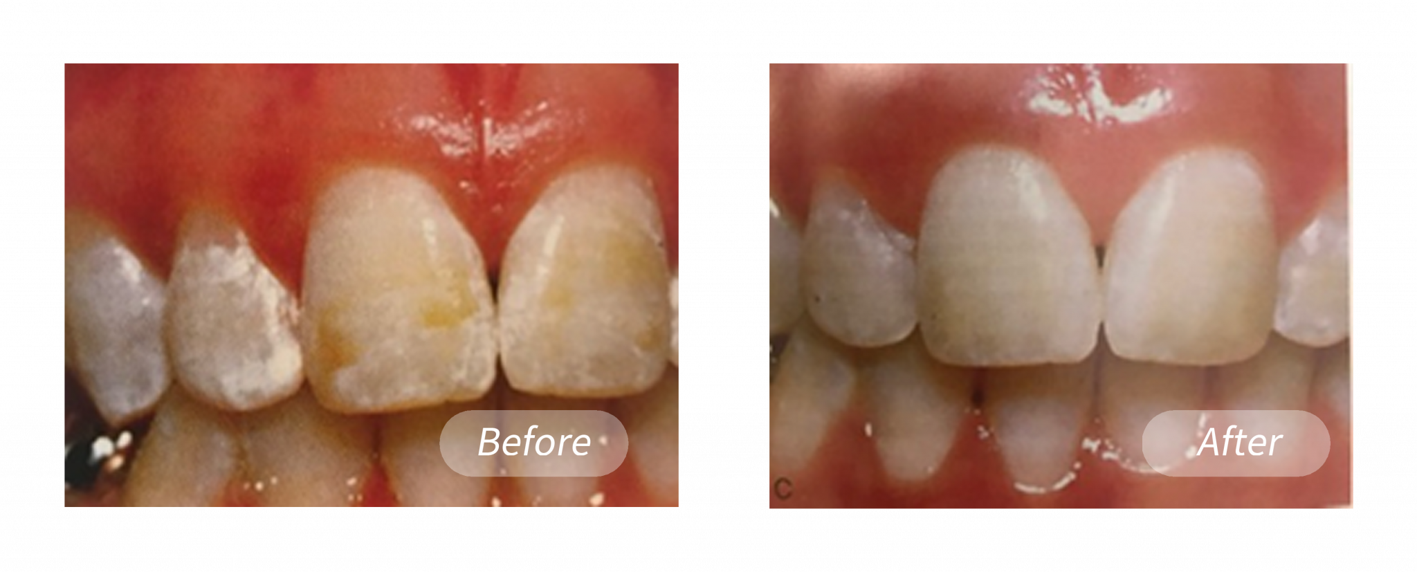 - 地方性氟中毒 Endemic Fluorosis :牙齒發育的過程中,若攝取過量的氟,會造成琺瑯質發育不良,琺瑯質表面會產生許多孔洞,孔洞上面就容易會有色素染色;但基本上氟攝取過多不會變色,只會形成白斑,這種情況是可以靠美白來改善的。