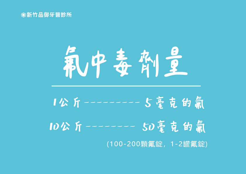 氟的可能中毒劑量 (probable toxic dose) 為 5mg/kg,若體重 10 公斤的兒童要誤食超過 50mg,相當於氟錠要吃 200 顆(0.25mg/顆)才會中毒。