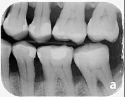 照射 X 光片可以讓醫師初步了解,齒槽骨被破壞的嚴重度、型態,來作適合的治療。其實兒童鮮少會有嚴重的牙周病,若有牙周病多半是罹患遺傳性的罕見疾病。上圖是以成人的 X 光作範例,兒童亦可拍攝。