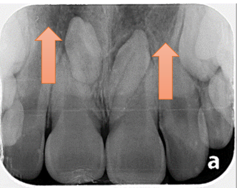 牙根尖底下出現黑影則表示牙齒可能有牙根尖囊腫或其他病變,有時從外表完全看不出來有異樣喔!