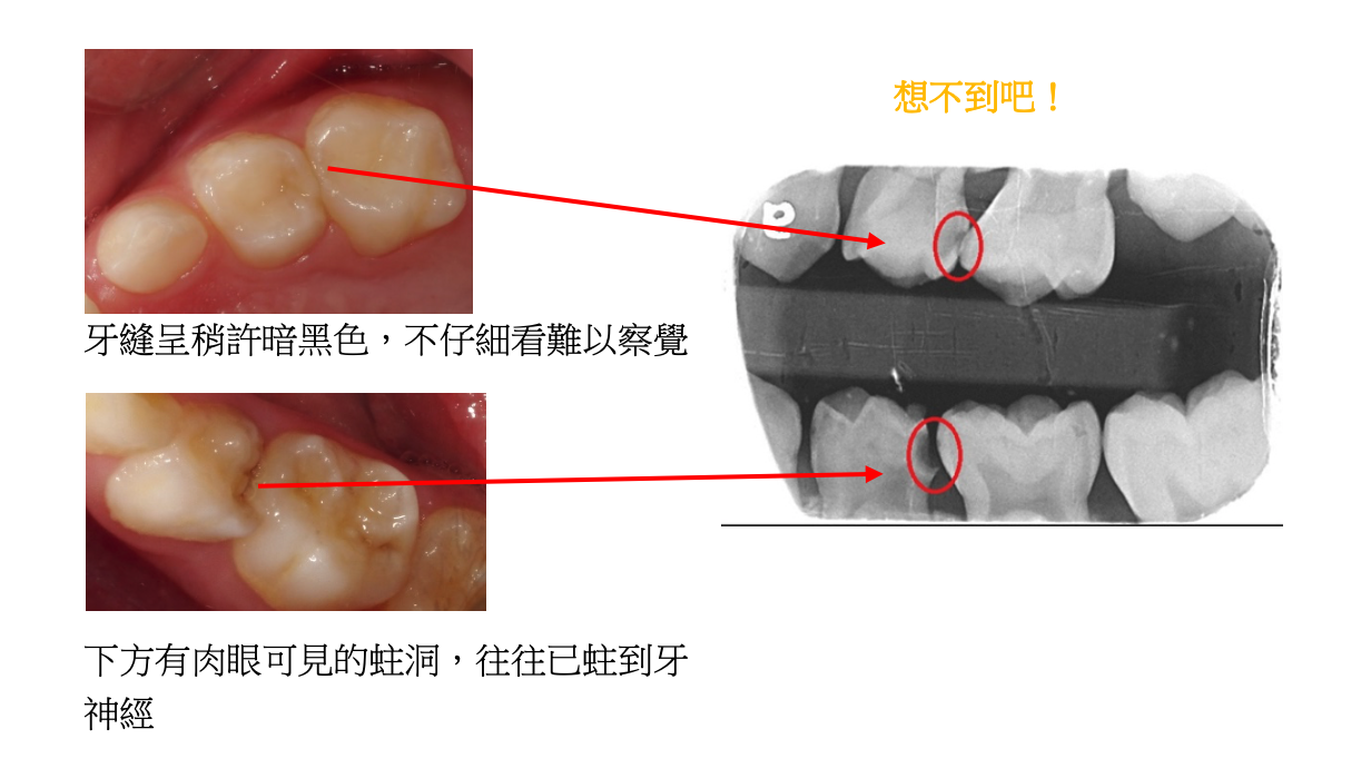 建議男生 3 歲半、女生 3 歲以上,有基本配合度時,可嘗試拍 X 光,不然以台灣兒童極高的蛀牙率,很容易錯失發現初期蛀牙的機會,最怕自我感覺良好,一直以為沒蛀牙,其實一堆蛀牙地雷埋在牙齒裡,得不償失啊!