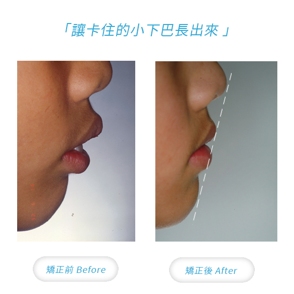 在兒童青少年時期,若深咬合併小下巴、下巴後縮,最好能提前改正深咬,讓被卡住的下巴,有機會長出來多一些,以改善臉型。