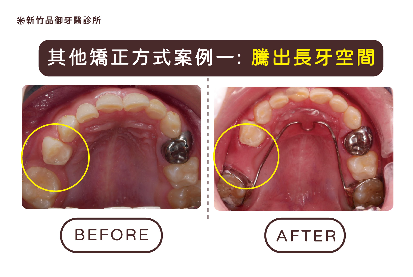 矯正後:騰出該牙空間,配戴維持器以維持空間。(案例提供:許雯婷醫師)