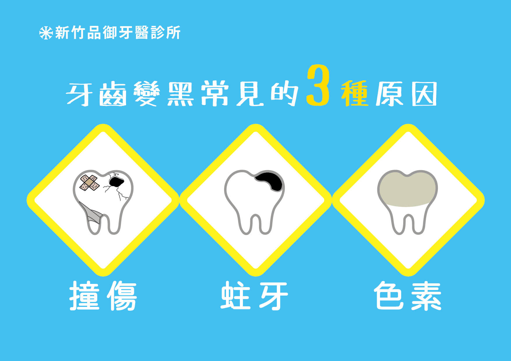 兒童較常見的原因有牙齒蛀牙、食物染色、牙齒外傷或長期使用 chlorohexidine 漱口水所引起,為後天造成。