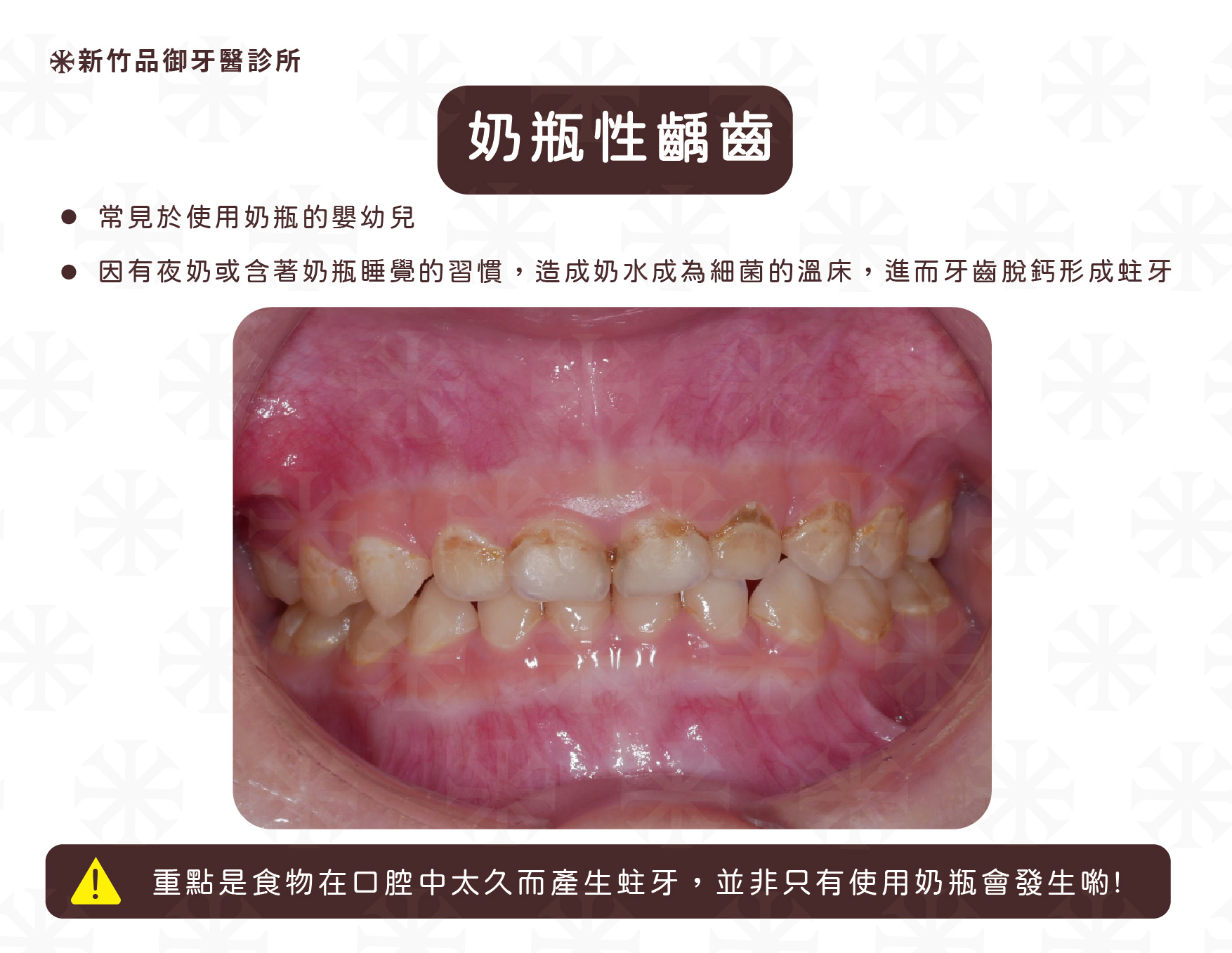 在門診時常常會看到小朋友上面門牙都蛀掉了,這就是所謂的奶瓶性齲齒。