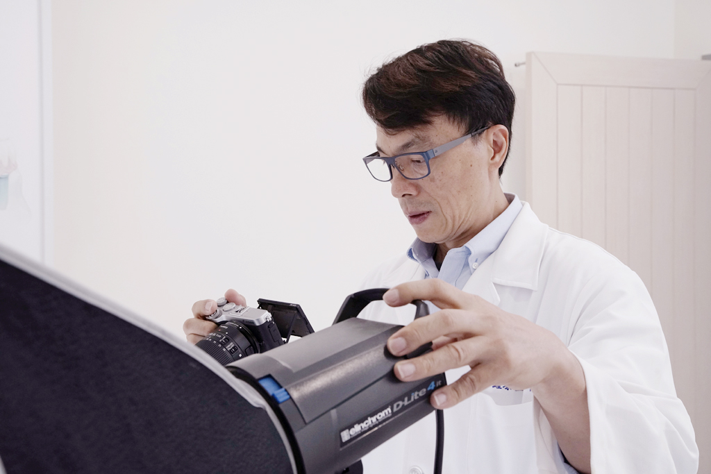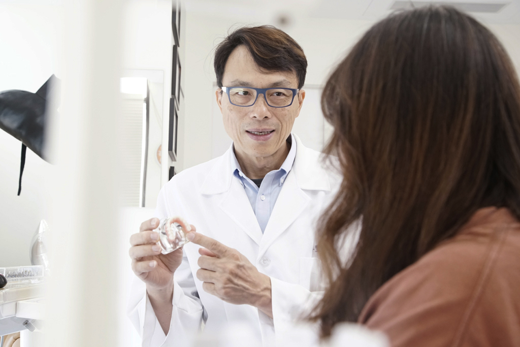 而這也是品御牙醫相當自豪的一部分,鍾泰豐醫師分享,細節成就價值,我們不是全人不可能什麼事都專精,唯有專業分工才能成就完美,鍾泰豐醫師主要負責贋復假牙,依據個人的臉形、膚色、年紀去設計微笑曲線,客製化兼具功能性和美觀的假牙。