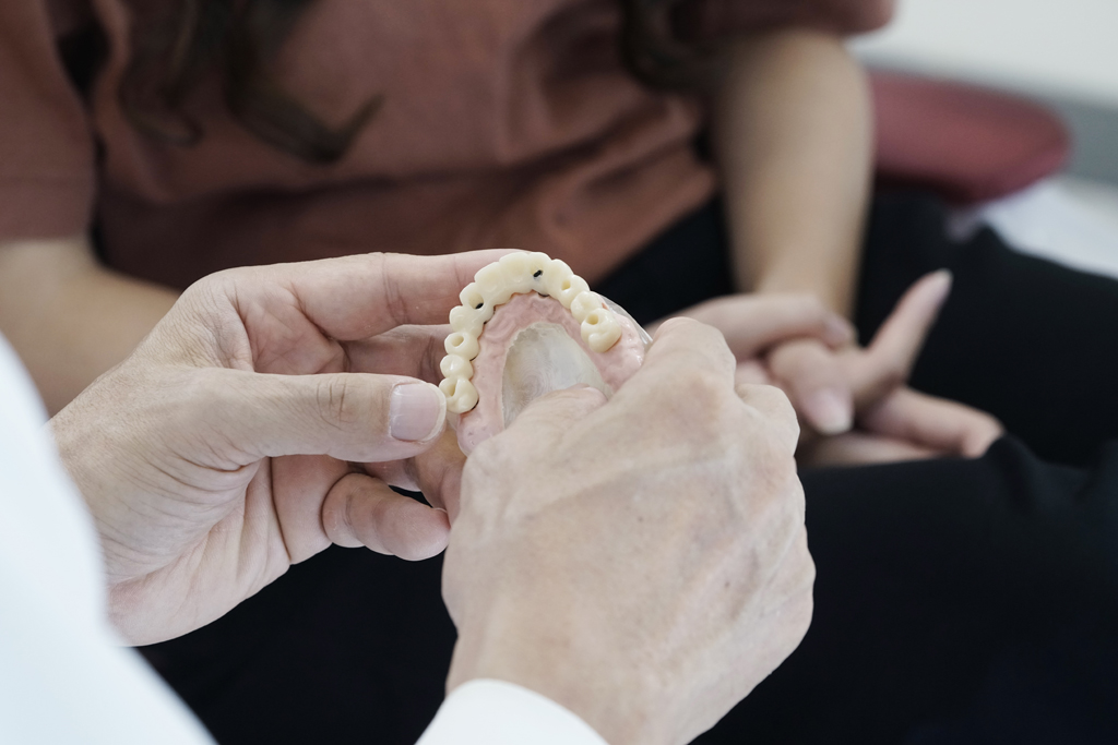 有鑑於此,2016年品御牙醫鍾泰豐醫師和牙科技師施財烈就想到使用複材質的方式就能在追求結構穩定的同時保有彈性,也因此開發了IBZ(IBO-BioHpp-Zirconia),而現在品御牙醫的病患在進行All-on-4療程時,大多數都選擇使用IBZ結構的假牙,成果也非常好。