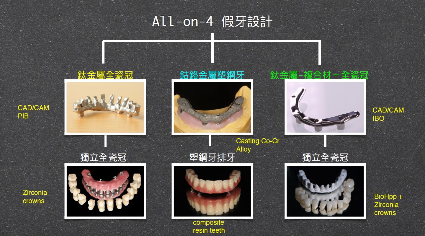 IBO(implant bar overdenture)、PIB(Procera implant bridge)以及品御牙醫診所研發的IBZ(IBO-BioHpp-Zirconia)