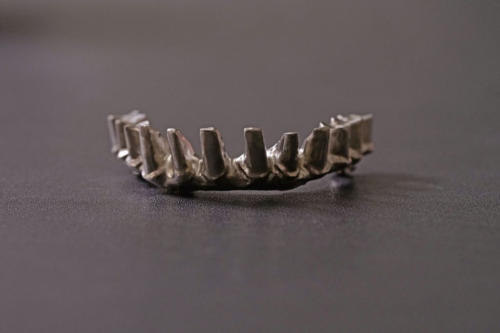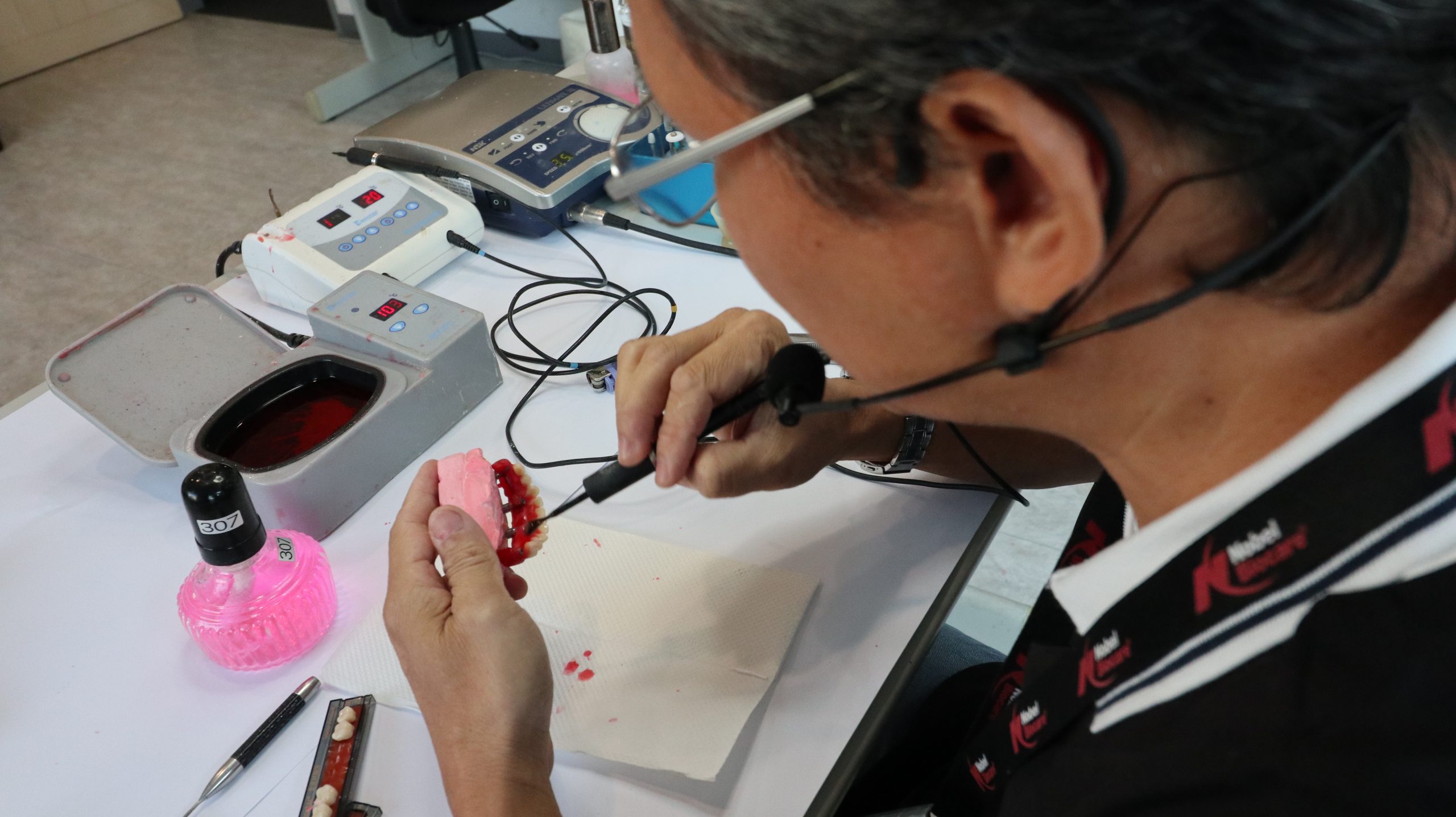 在All-on-4技術面之外,品御牙醫也專注在假牙材質上的研發,鍾泰豐醫師和牙科技師施財烈共同研究更適用於人體口腔的假牙材質。