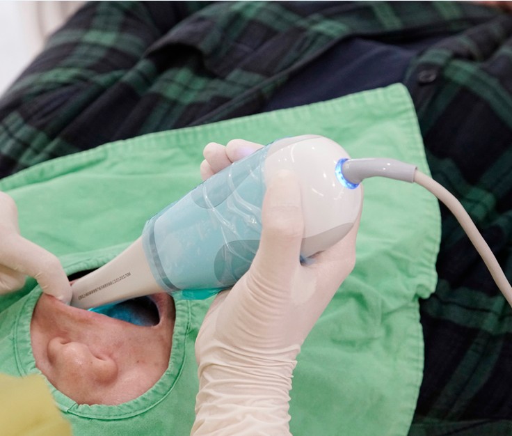 李俊瑩醫師解說道:「使用數位口掃機掃描,只要將鏡頭在口腔內照一圈就可以取代傳統取模的方式,最快 30 秒至 1 分鐘就能拍攝完畢,之後再利用掃描後的檔案製作模型。大大省去等齒模固定的時間,也能減輕病患的不適感。相信體驗過的病患都會有好評價! 」