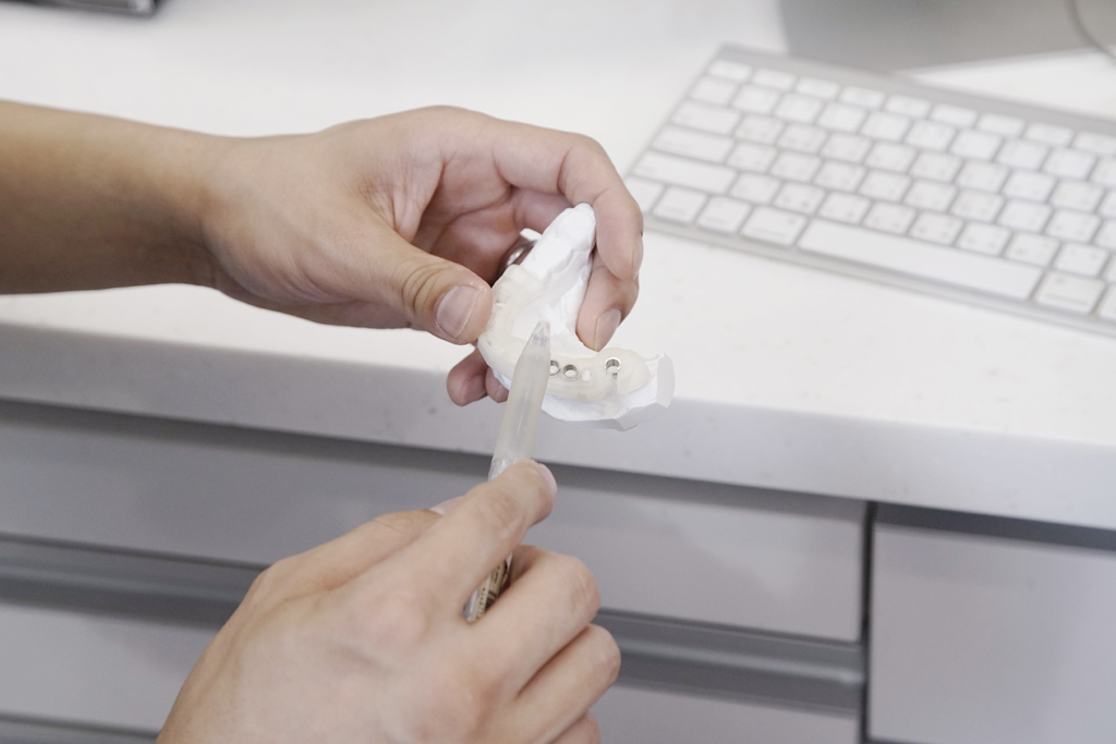 因為口腔內視線死角多,有舌頭或臉頰的阻礙,所以靠經驗植牙其實是非常不夠的,數位導引板不僅可以幫助醫生們更精準地進行手術,減少誤差,每一個導引板都是客製化為每位患者量身打造。