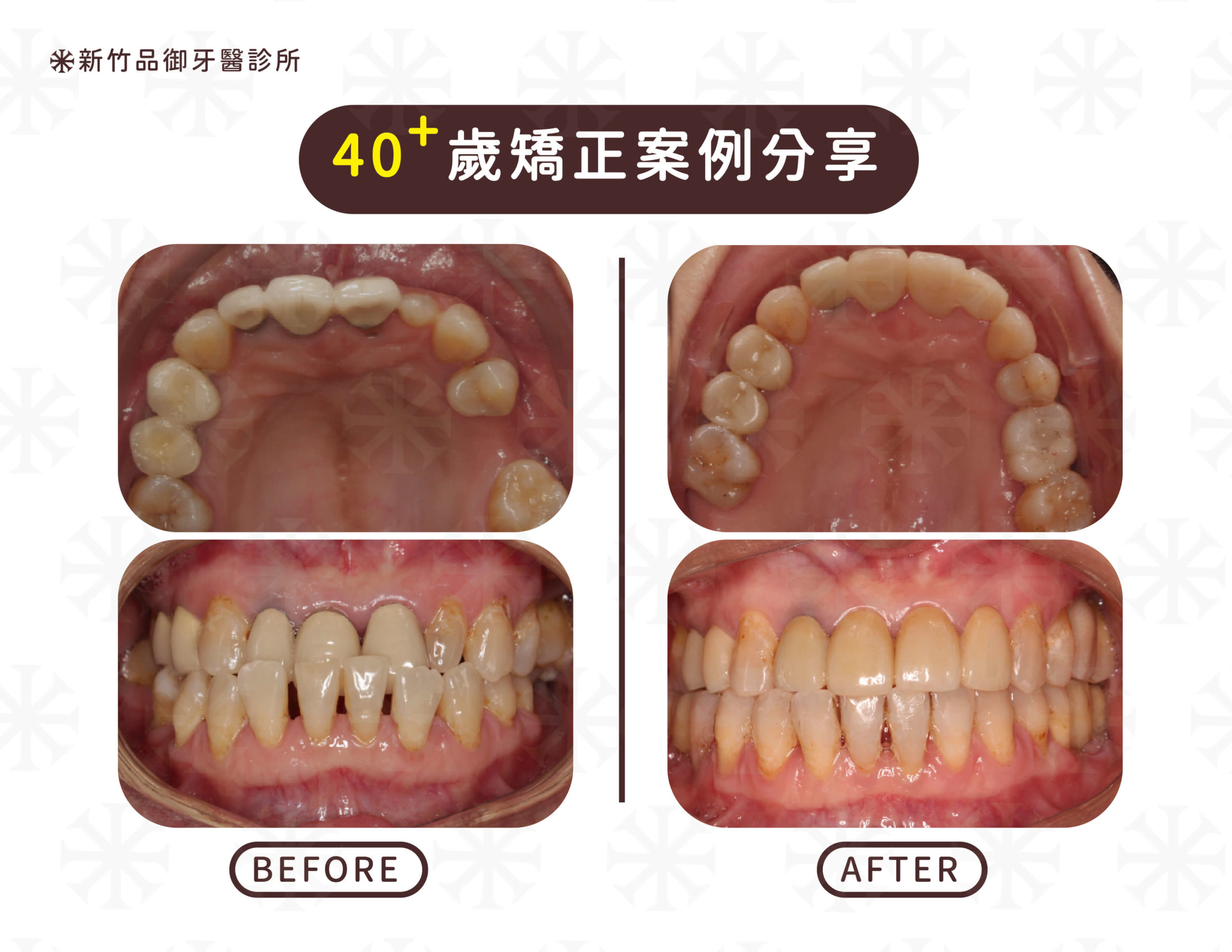 A:年紀老不老跟效果好不好沒太多關聯性,只是隨著年紀顎骨越硬,牙齒會較不容易移動。但因每個人狀況不同,只要先與醫師討論並確定治療計畫,療程中會比較順利達成醫生和病人期望的結果