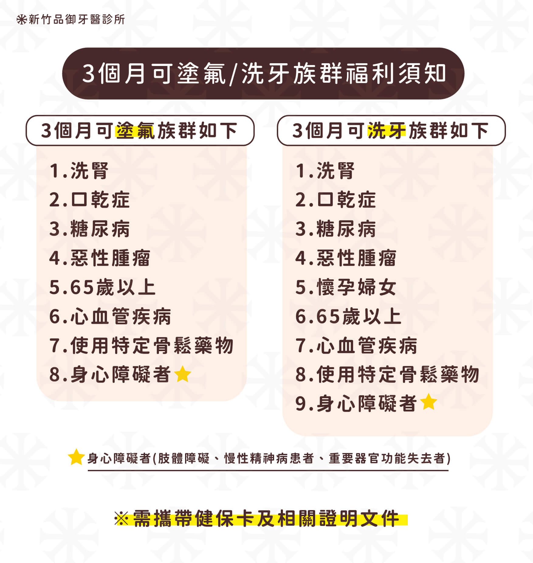 - 健保補助方式:每 3 個月一次的洗牙與塗氟