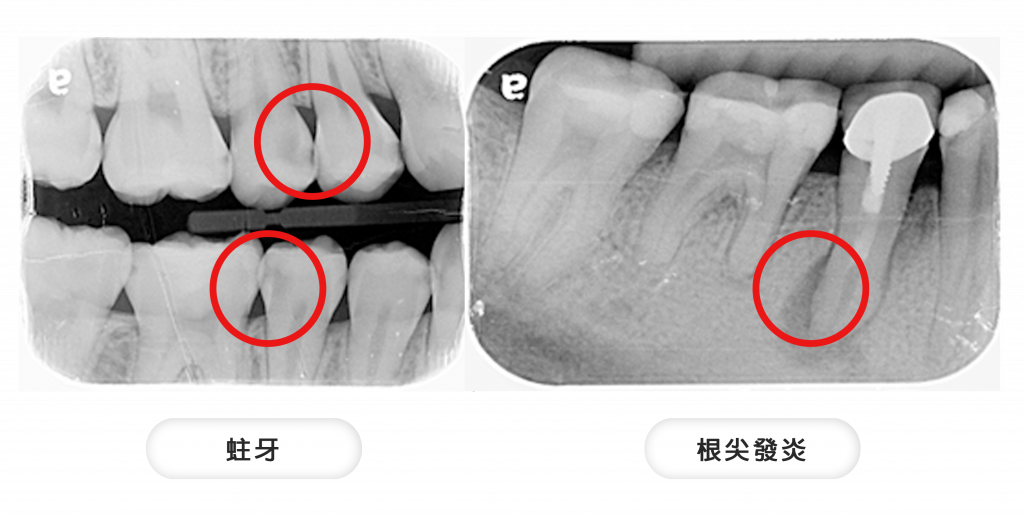 還有在裝牙冠的時候也需要 X 光,來看看周邊是否有密合、有無縫隙,這些都是肉眼在口腔無法判斷的。