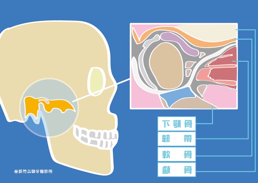 顳顎關節位於頭部雙側耳朵前方,主要包含連接顱骨跟下顎骨的軟骨、韌帶以及肌肉,整個結構合稱為咀嚼系統。