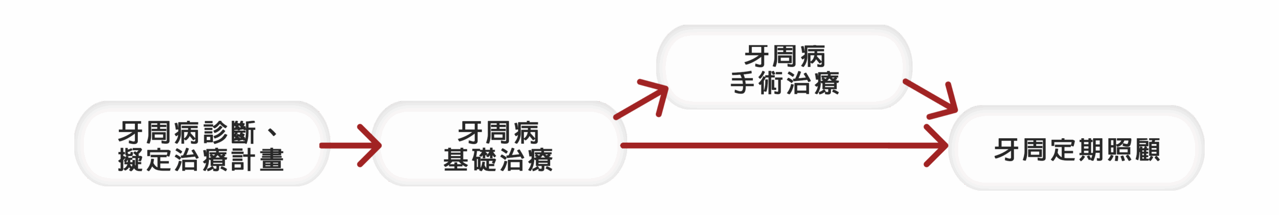 - 牙周再生手術:包含 引導組織再生術 及 牙釉基質衍生物 等。