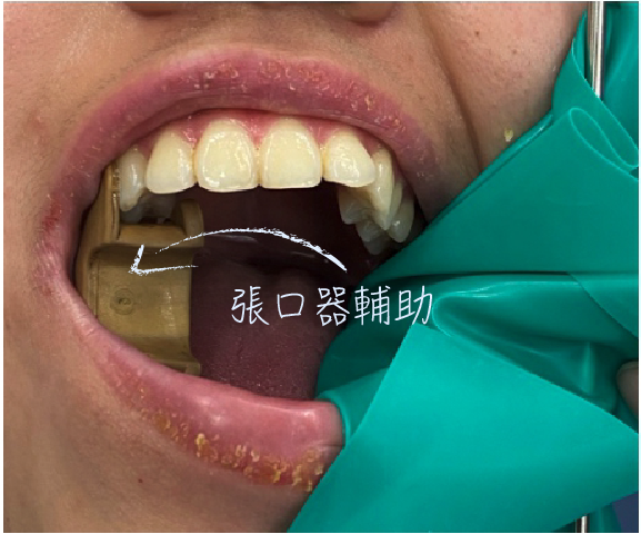 使用橡皮障過程中,患者需要張口較長時間,容易引起關節不適及疲勞,可以請醫師在另一側置放張口器輔助,稍微幫忙減輕張口程度。