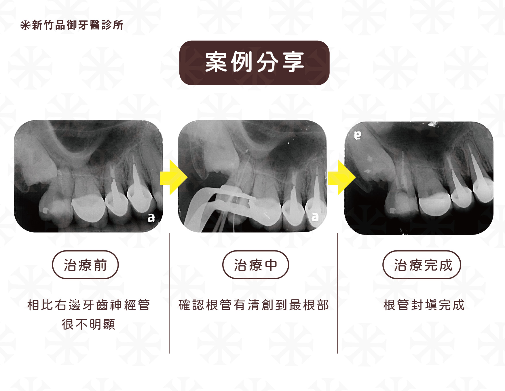 王小姐有一天因為牙齒痛來就診,拍了X光片後發現蛀牙範圍已經影響到神經,告知需要做根管治療才可以解決疼痛的問題。