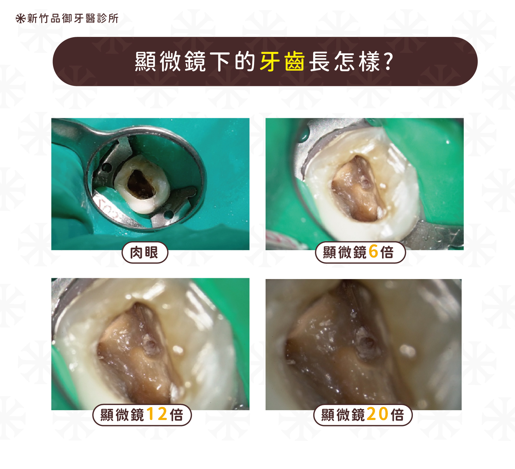讓醫師更清楚地將牙髓腔內的細節看得更清楚,更全面的清潔,且降低齒質的損失,進而提升治療成功率。